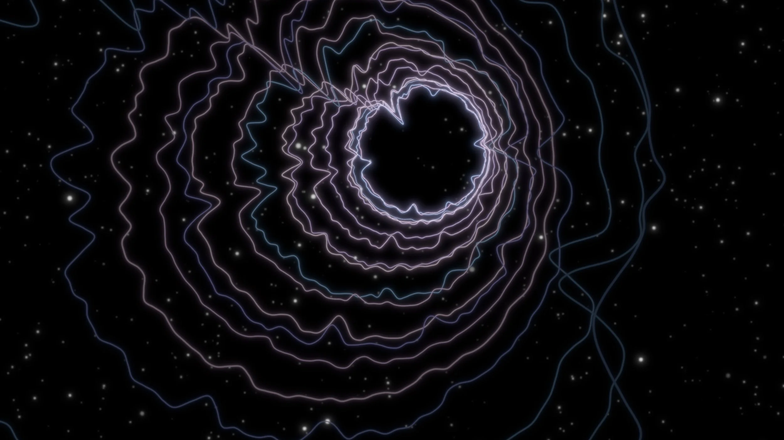 A visualizer, responding in real time to the music, translates these sounds into shifting constellations of light—particles rippling, merging, and shimmering, like stardust carried on invisible currents.