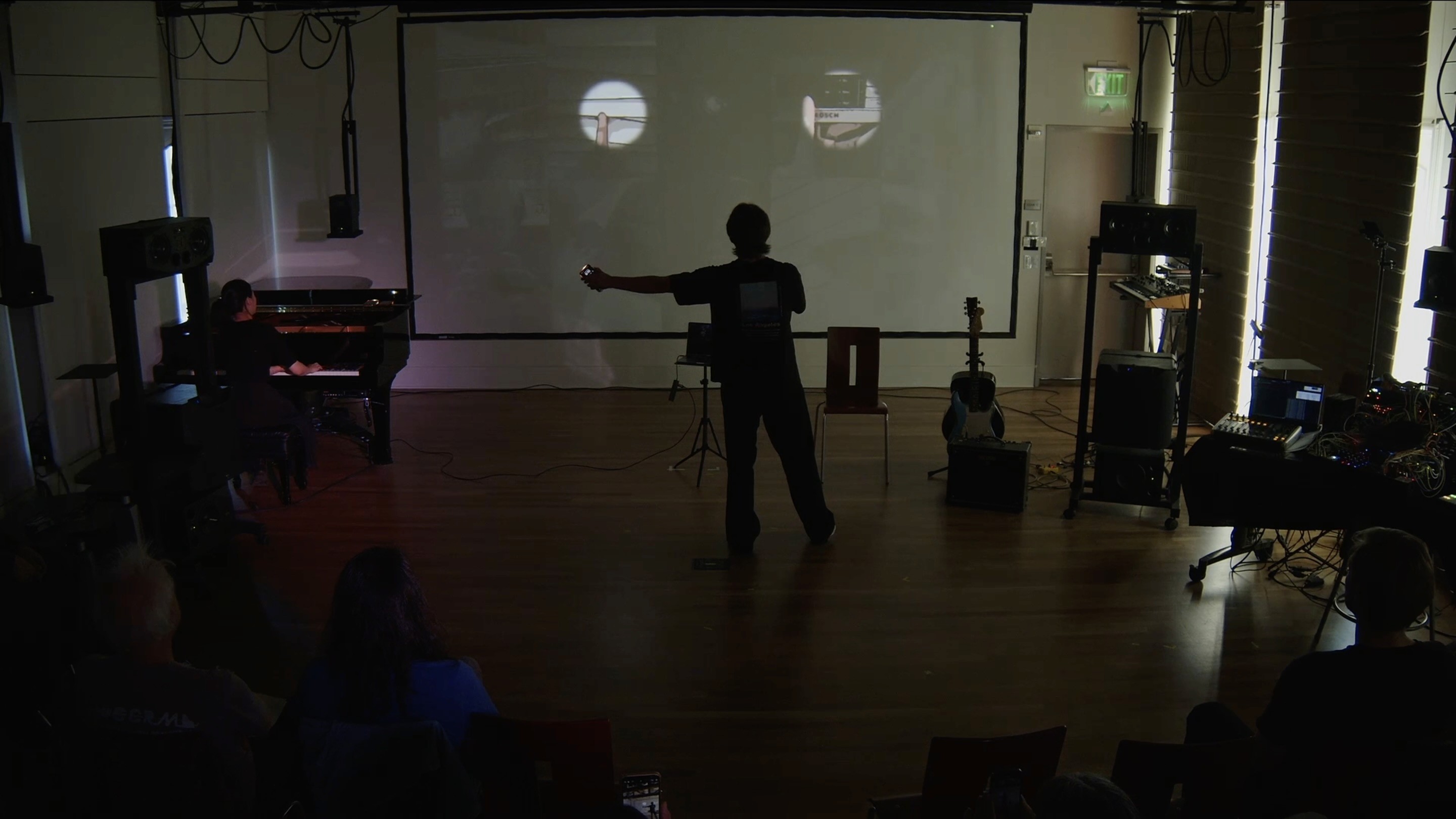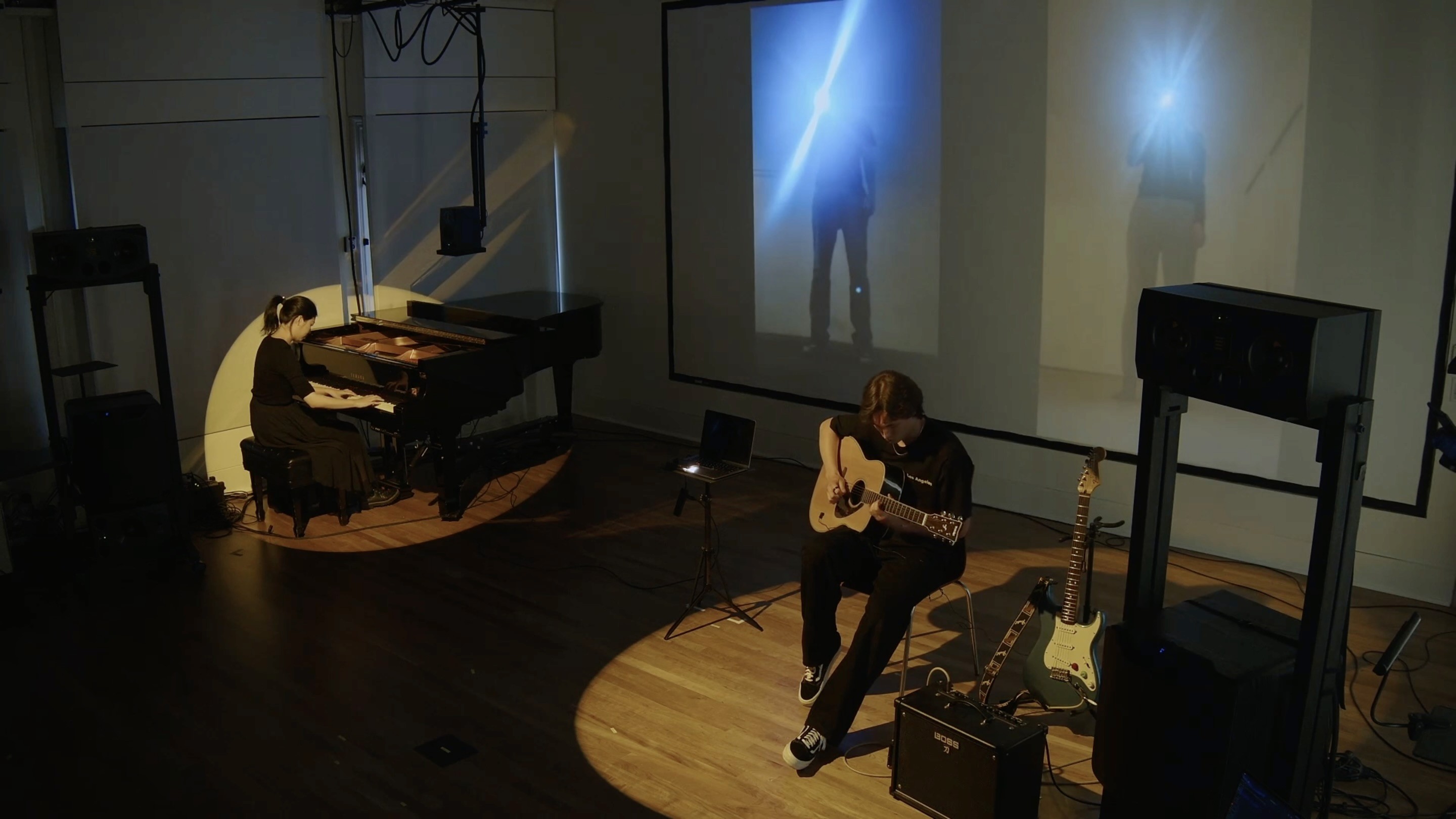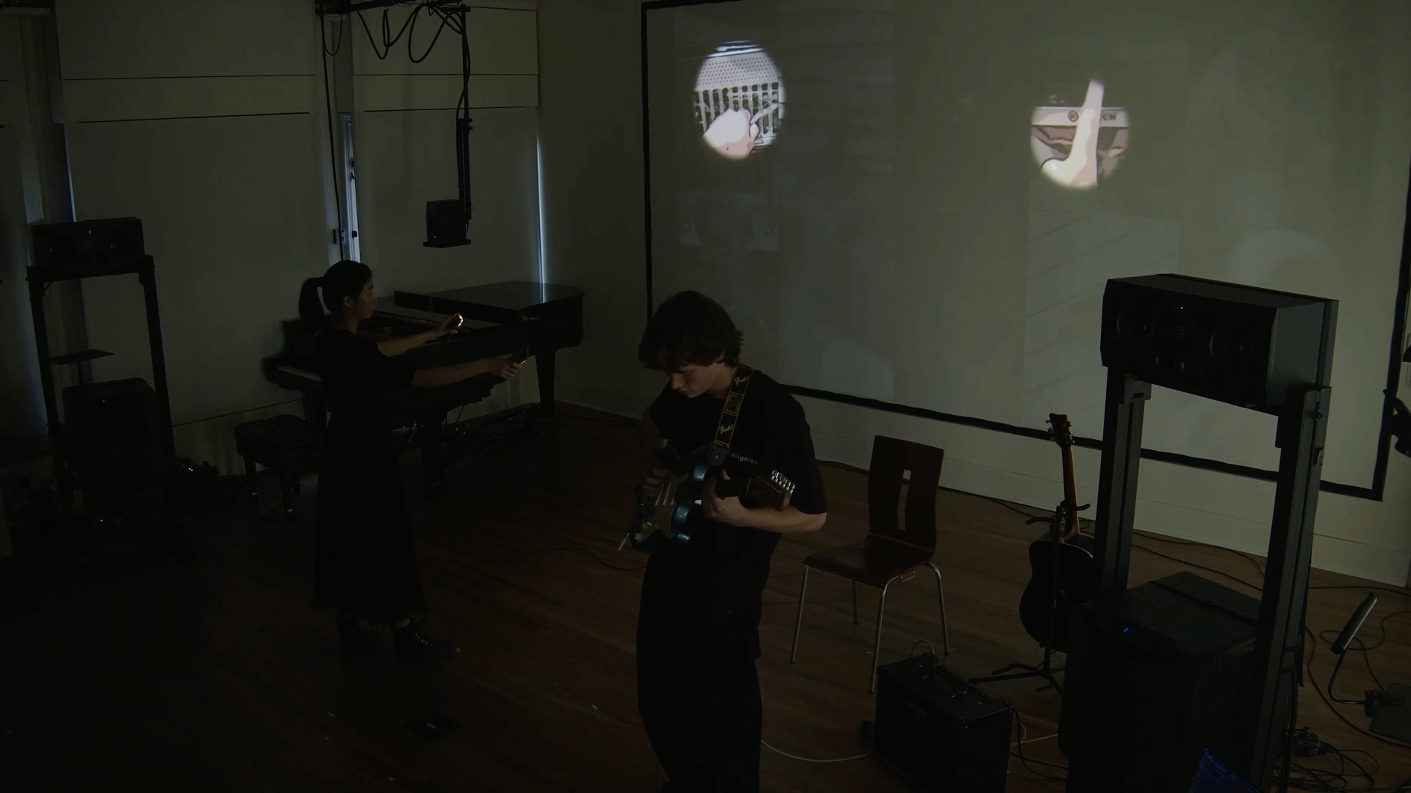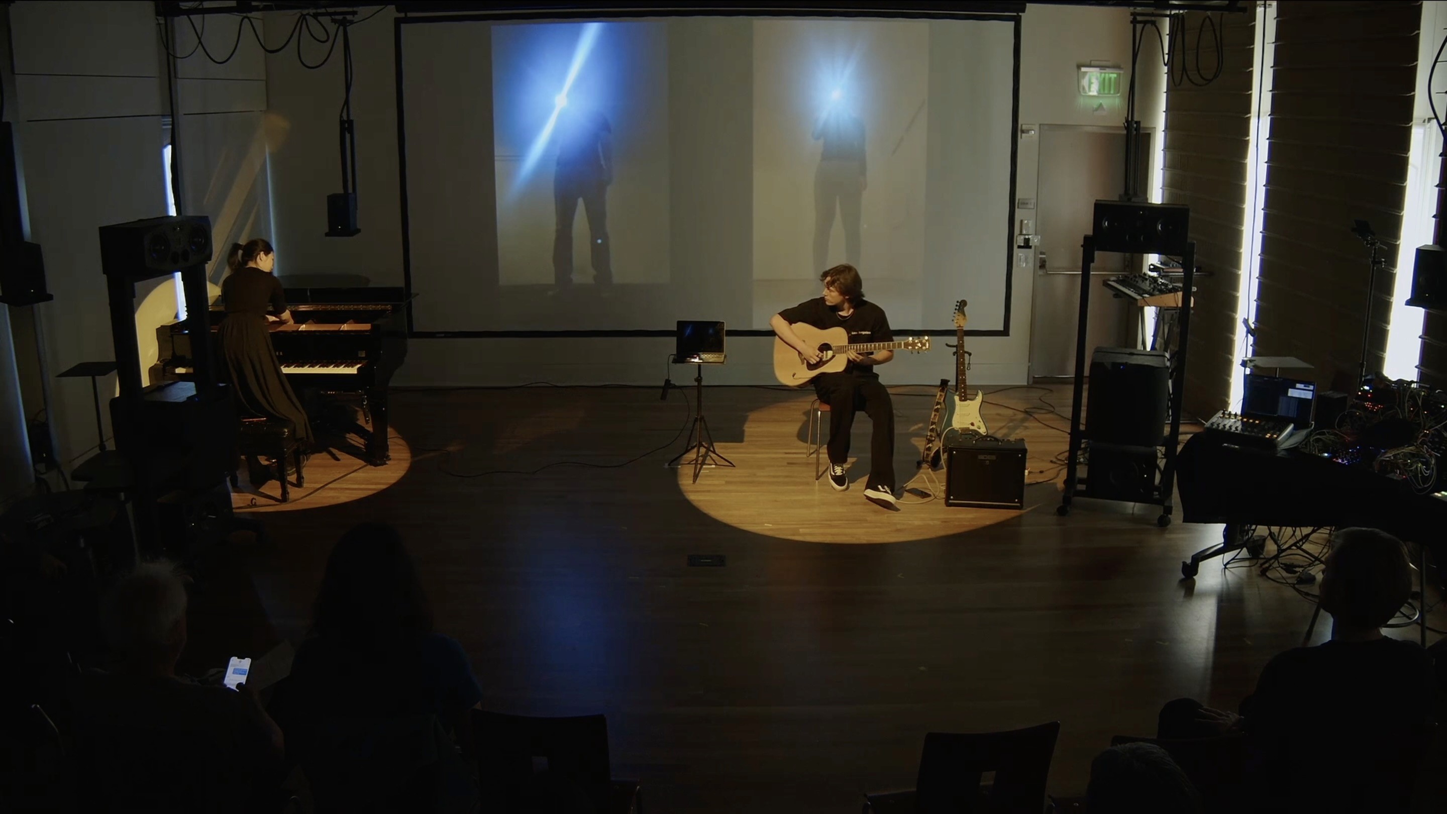The system sees. It responds. A gesture here brings forth a tone. A flicker there ripples across the projection. Even the softest movement carries weight—transforming space, transforming sound.